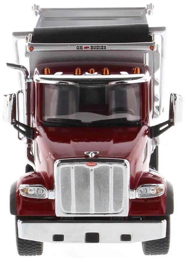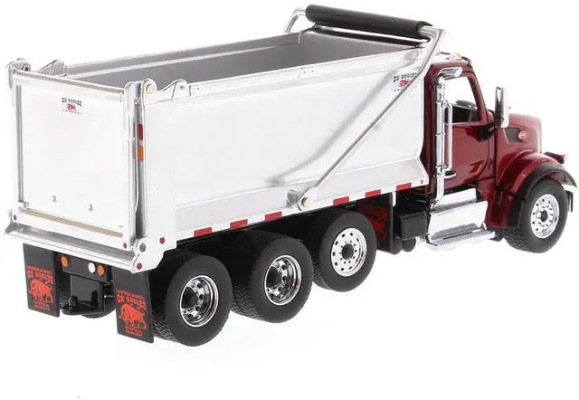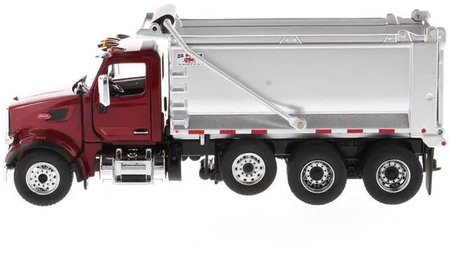 Brand new 1/50 scale diecast model of Peterbilt 567 SFFA Tandem Axle with Pusher Axle OX Stampede Dump Truck Red and Chrome "Transport Series" die cast model by Diecast Masters.