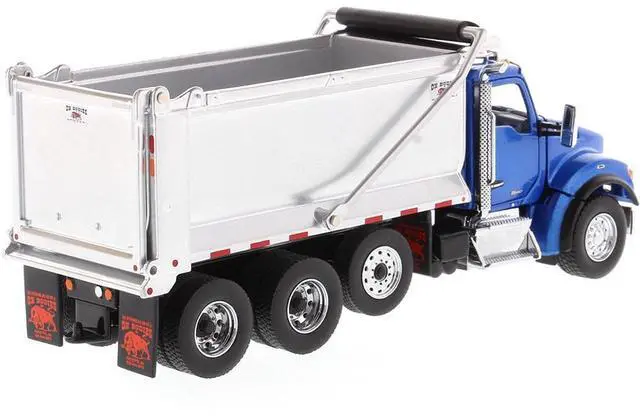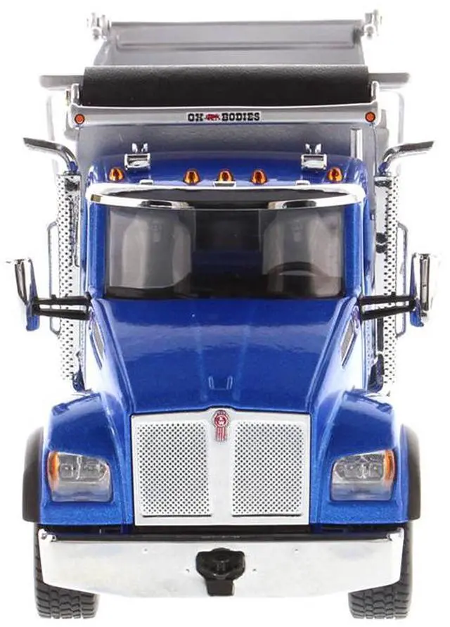 Brand new 1/50 scale diecast model of Kenworth T880S SFFA Tandem Axle with Pusher Axle OX Stampede Dump Truck Blue and Chrome "Transport Series" die cast model by Diecast Masters.