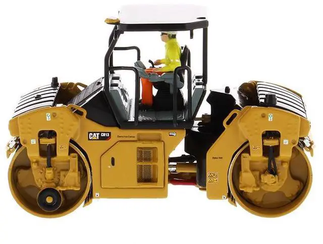 Brand new 1/50 scale diecast model of CAT Caterpillar CB-13 Tandem Vibratory Roller with ROPS (Roll Over Protective Structure) and Operator "High Line Series" die cast model by Diecast Masters.