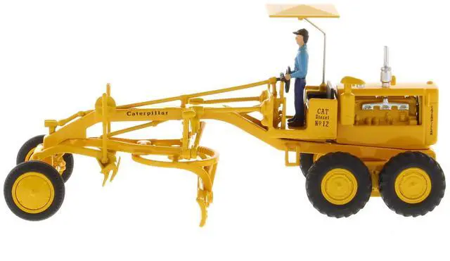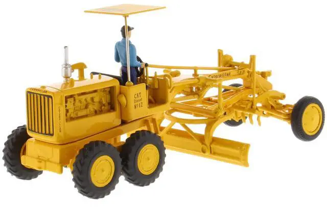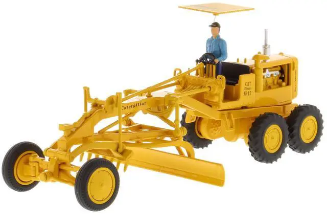 Brand new 1/50 scale diecast model of CAT Caterpillar No. 12 Motor Grader Yellow with Operator "Vintage Series" die cast model by Diecast Masters.