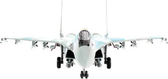 The 1/72 scale diecast model of the Su-35 Flanker E Blue 25 features a detailed design with a mix of die-cast metal and plastic components, accurate panel lines, and markings. The model also includes detachable ordnance loads and movable parts such as canopies and control surfaces.
