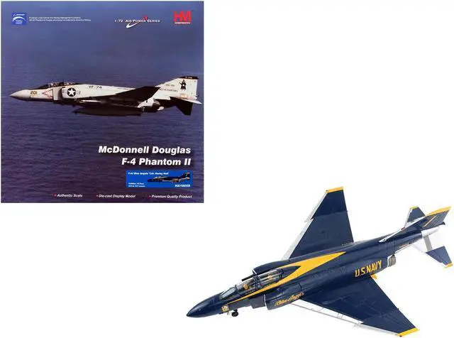 Brand new 1/72 scale diecast model of McDonnell Douglas F-4J Phantom II Fighter-Bomber Aircraft "Blue Angels, Cdr. Harley Hall, 1970 to 1971 Season" United States Navy "Air Power Series" die cast model by Hobby Master.