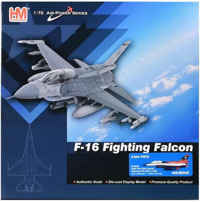 Brand new 1/72 scale diecast model of General Dynamics X-62A VISTA Aircraft "86-0048, USAF Test Pilot School, Edwards Air Force Base" (2024) United States Air Force "Air Power Series" die cast model by Hobby Master.