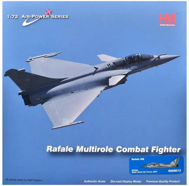 Brand new 1/72 scale diecast model of Dassault Rafale DQ Fighter Aircraft "QA209" (2021) Qatar Emiri Air Force "Air Power Series" die cast model by Hobby Master.