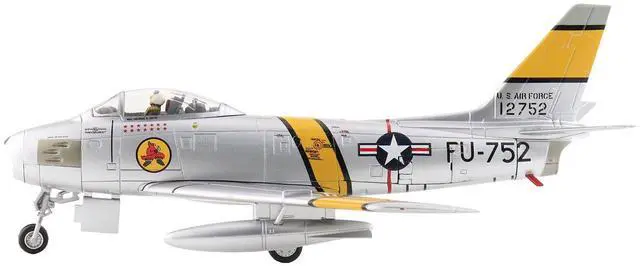 Brand new 1/72 scale diecast model of North American F-86E Sabre Fighter Aircraft "51-2752, Colonel George Andrew Davis Jr., 4th FIG, 334th FIS" (1952) United States Air Force "Air Power Series" die cast model by Hobby Master.