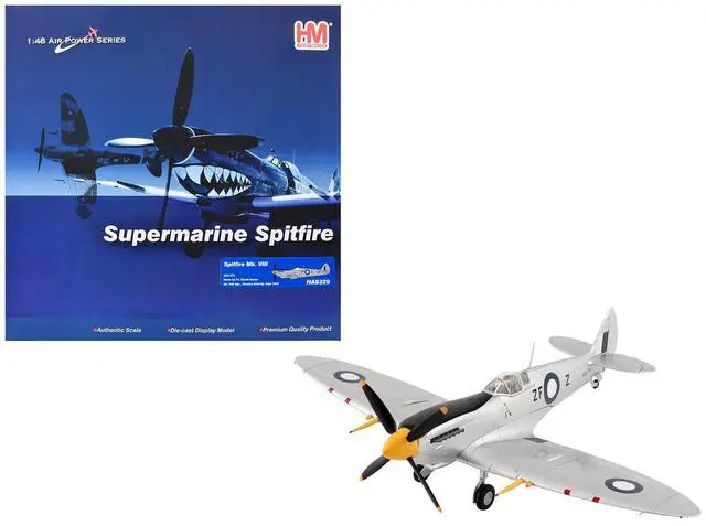 Brand new 1/48 scale diecast model of Supermarine Spitfire Mk VIII Fighter Aircraft "A53-379, Flight Lieutenant David Glaser, No. 549 Squadron, Strauss Airstrip" (1944) Royal Australian Air Force "Air Power Series" die cast model by Hobby Master.