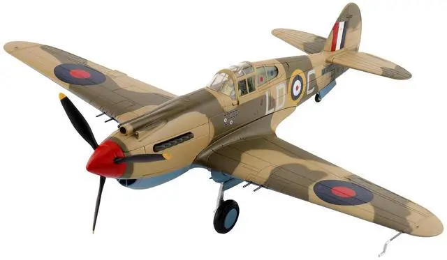 Brand new 1/48 scale diecast model of Curtiss P-40 Warhawk Tomahawk Mk IIB Aircraft "LD-C, Clive Caldwell, No. 250 Squadron, North Africa" (1942) British Royal Air Force "Air Power Series" die cast model by Hobby Master.