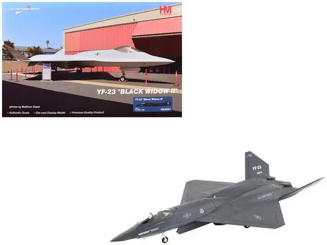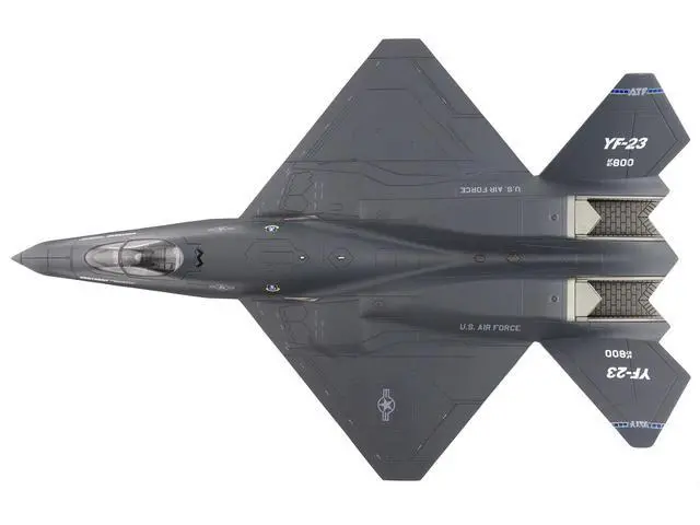 Brand new 1/72 scale diecast model of Northrop YF-23 Black Widow II Stealth Fighter Aircraft "#87-0800, PAV-1" (1990) United States Air Force "Air Power Series" die cast model by Hobby Master.