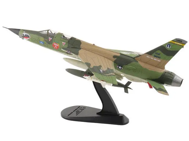 Brand new 1/72 scale diecast model of Republic F-105F Thunderchief Fighter-Bomber Aircraft "63-8299, Peach 91, 128th Tactical Fighter Squadron, Georgia ANG, Dobbins Air Reserve Base" United States Air Force "Air Power Series" die cast model by Hobby Master.