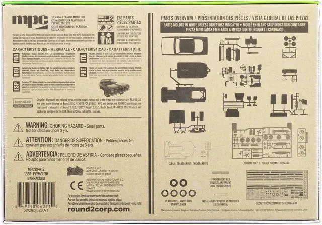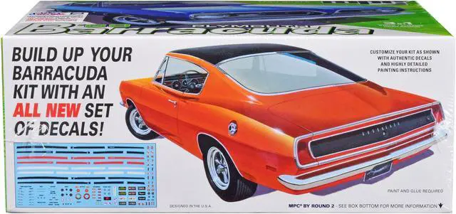 Brand new 1/25 scale plastic model kit of 1969 Plymouth Barracuda 3-in-1 Kit (Skill 2) 1/25 plastic model kit by MPC.