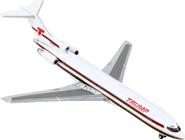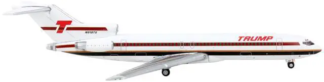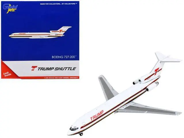 Brand new 1/400 scale diecast airplane model of Boeing 727-200 Commercial Aircraft "Trump Shuttle" White with Red Stripes die cast model by GeminiJets.