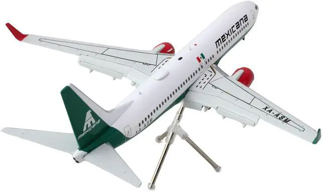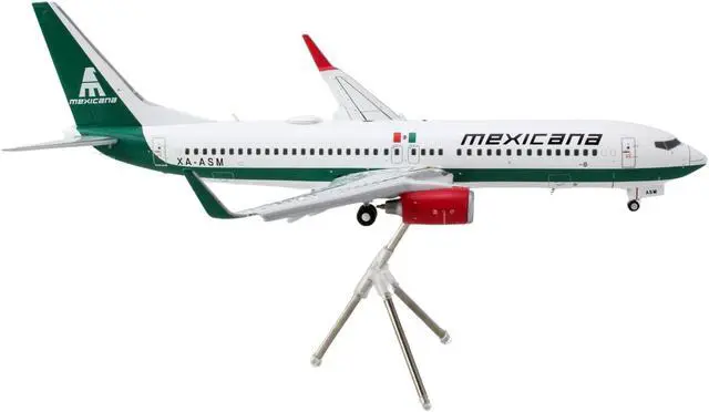 Brand new 1/200 scale diecast airplane model of Boeing 737-800 Commercial Aircraft with Flaps Down "Mexicana" (XA-ASM) White with Green Stripes "Gemini 200" Series die cast model by GeminiJets.