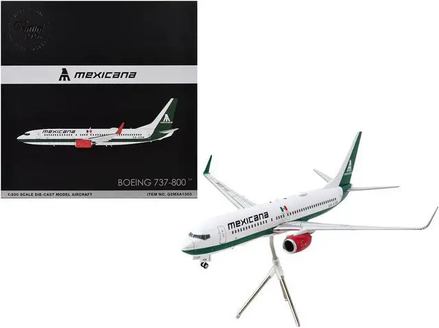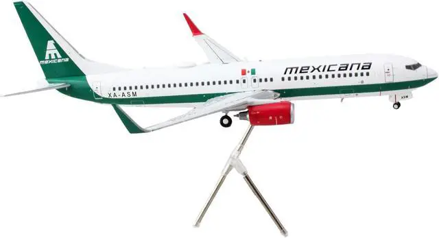 Brand new 1/200 scale diecast airplane model of Boeing 737-800 Commercial Aircraft "Mexicana" (XA-ASM) White with Green Stripes "Gemini 200" Series die cast model by GeminiJets.