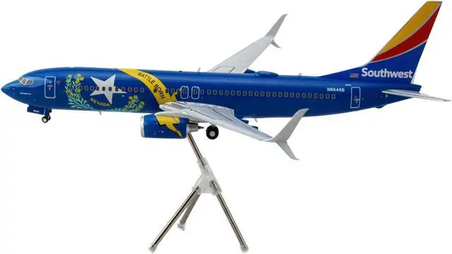 Brand new 1/200 scale diecast airplane model of Boeing 737-800 Commercial Aircraft "Southwest Airlines - Nevada One" (N8646B) Blue with Tail Stripes "Gemini 200" Series die cast model by GeminiJets.