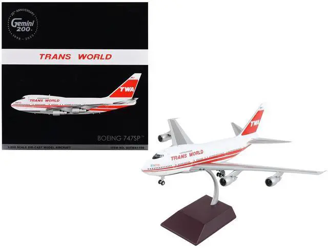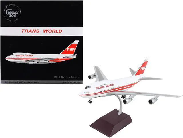 Brand new 1/200 scale diecast airplane model of Boeing 747SP Commercial Aircraft "TWA (Trans World Airlines) " White with Red Stripes and Tail "Gemini 200" Series die cast model by GeminiJets.
