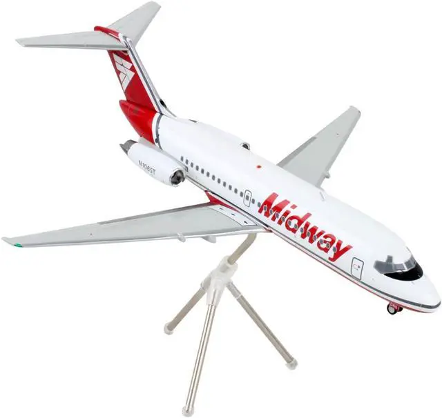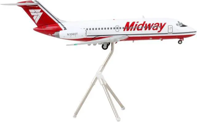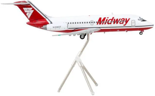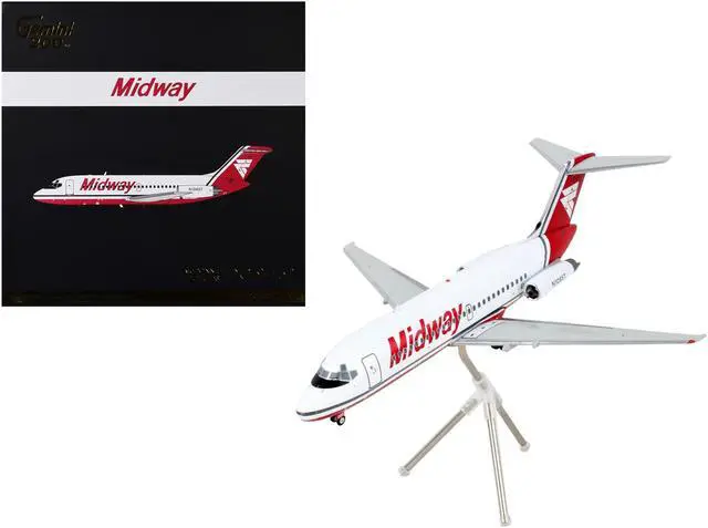 Brand new 1/200 scale diecast airplane model of McDonnell Douglas DC-9-15 Commercial Aircraft "Midway Airlines" White with Red Tail "Gemini 200" Series die cast model by GeminiJets.