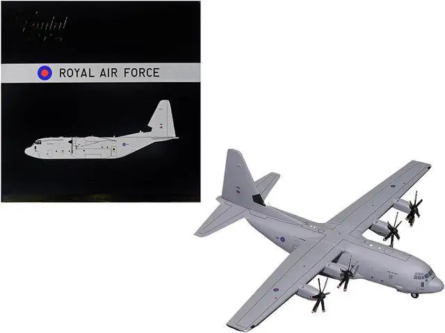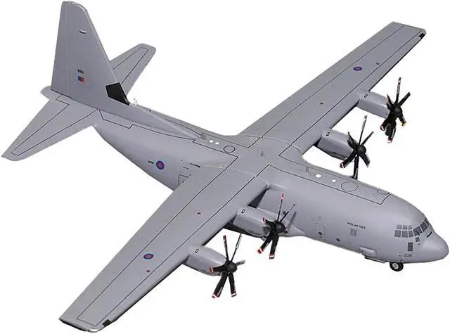 Brand new 1/200 scale diecast airplane model of Lockheed C-130J Super Hercules Transport Aircraft "British Royal Air Force" Gray "Gemini 200" Series die cast model by GeminiJets.