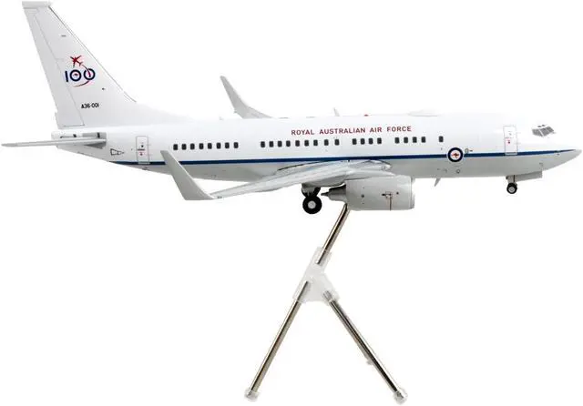 Brand new 1/200 scale diecast airplane model of Boeing 737-700 Transport Aircraft "Royal Australian Air Force 100th Anniversary - A36-001" White and Gray "Gemini 200" Series die cast model by GeminiJets.