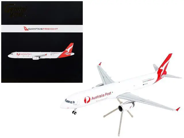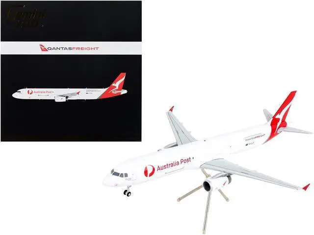 Brand new 1/200 scale diecast airplane model of Airbus A321P2F Commercial Aircraft "Qantas Freight - Australia Post" White with Red Tail "Gemini 200" Series die cast model by GeminiJets.