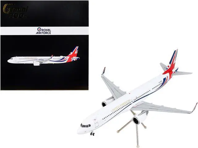 Brand new 1/200 scale diecast airplane model of Airbus A321neo Commercial Aircraft "British Royal Air Force" White with United Kingdom Flag Graphics "Gemini 200" Series die cast model by GeminiJets.