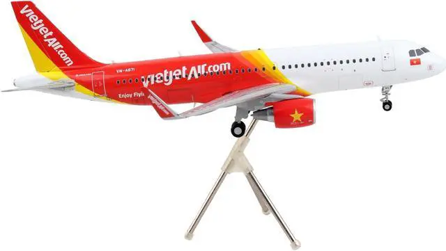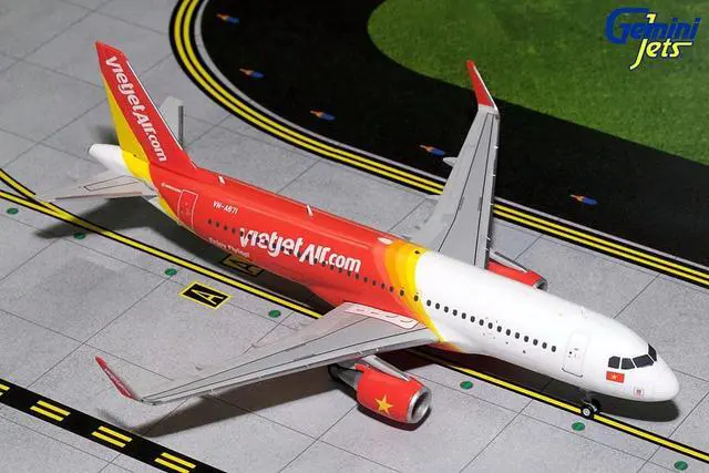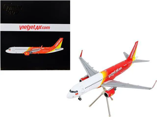 Brand new 1/200 scale diecast airplane model of Airbus A320 Commercial Aircraft "VietJet Air" White and Red "Gemini 200" Series die cast model by GeminiJets.