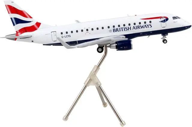 Brand new 1/200 scale diecast airplane model of Embraer ERJ-170 Commercial Aircraft "British Airways" White with Striped Tail "Gemini 200" Series die cast model by GeminiJets.