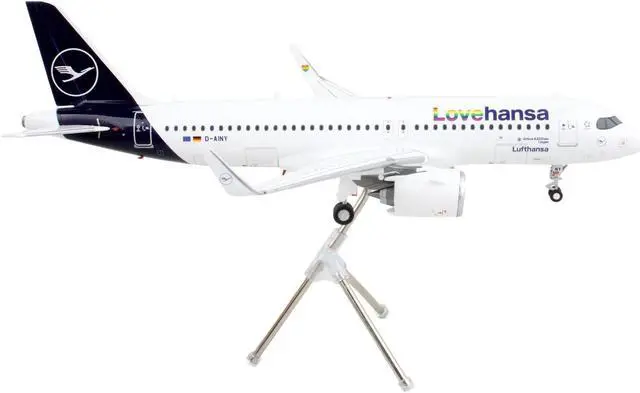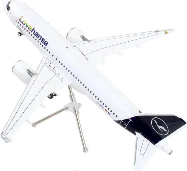Brand new 1/200 scale diecast airplane model of Airbus A320neo Commercial Aircraft "Lufthansa - LoveHansa" White with Blue Tail "Gemini 200" Series die cast model by GeminiJets.