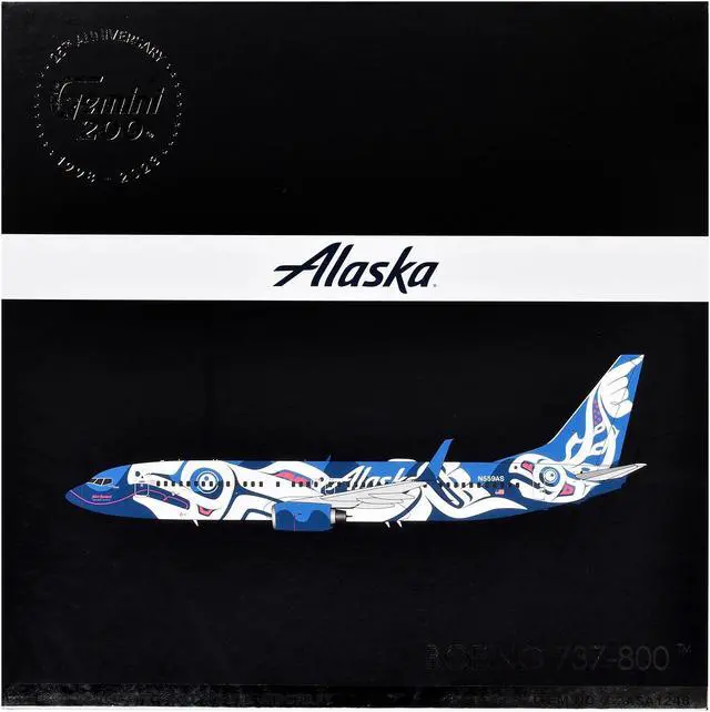 Brand new 1/200 scale diecast airplane model of Boeing 737-800 Commercial Aircraft "Alaska Airlines" (N559AS) Salmon People Livery "Gemini 200" Series die cast model by GeminiJets.