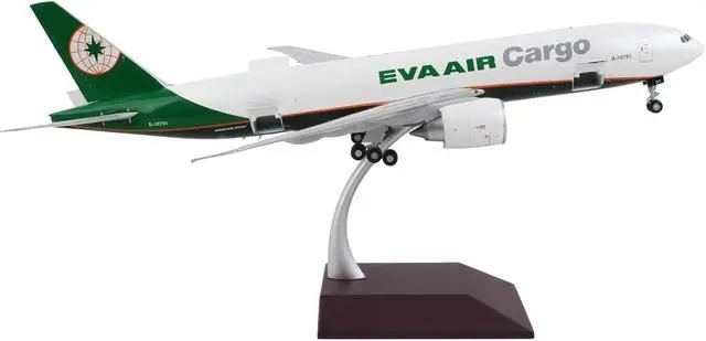 Brand new 1/200 scale diecast airplane model of Boeing 777F Commercial Aircraft "Eva Air Cargo" White with Green Tail "Gemini 200 - Interactive" Series die cast model by GeminiJets.