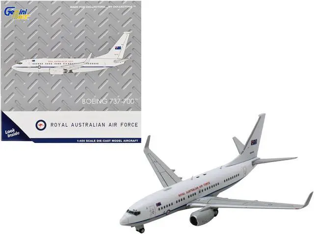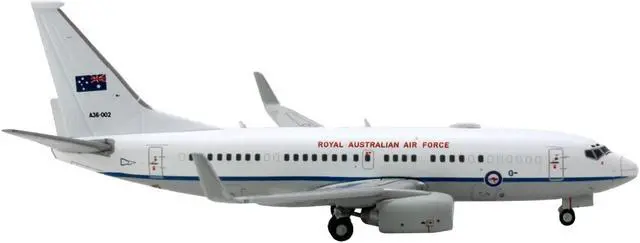 Brand new 1/400 scale diecast airplane model of Boeing 737-700 Aircraft "Royal Australian Air Force" (A36-002) White with Blue Stripes "Gemini Macs" Series die cast model by GeminiJets.