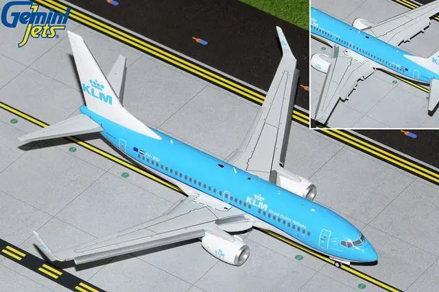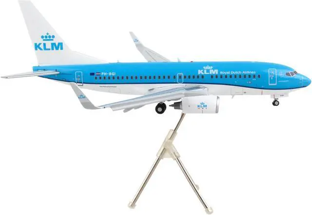 Brand new 1/200 scale diecast airplane model of Boeing 737-700 Commercial Aircraft with Flaps Down "KLM Royal Dutch Airlines" Blue with White Tail "Gemini 200" Series die cast model by GeminiJets.