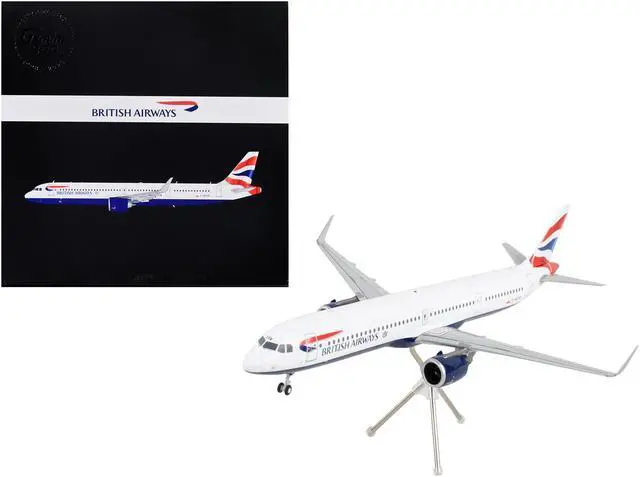 Brand new 1/200 scale diecast airplane model of Airbus A321neo Commercial Aircraft "British Airways" White with Tail Stripes "Gemini 200" Series die cast model by GeminiJets.