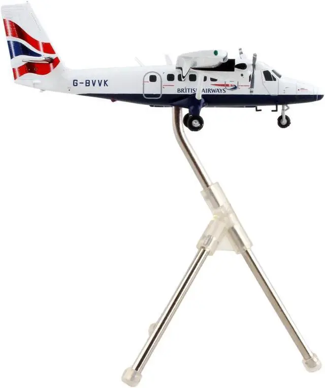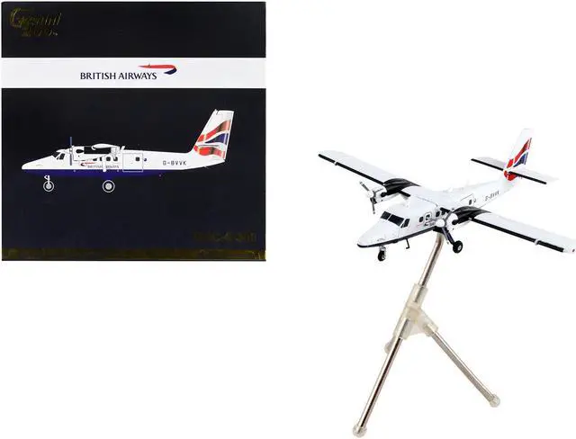 Brand new 1/200 scale diecast airplane model of De Havilland DHC-6-300 Commercial Aircraft "British Airways" White with Striped Tail "Gemini 200" Series die cast model by GeminiJets.