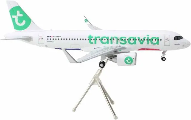 Brand new 1/200 scale diecast airplane model of Airbus A320neo Commercial Aircraft "Transavia Airlines" (F-GNEO) White with Green Tail "Gemini 200" Series die cast model by GeminiJets.