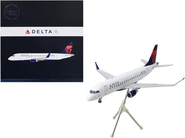 Brand new 1/200 scale diecast airplane model of Embraer ERJ-175 Commercial Aircraft "Delta Connection" White with Blue and Red Tail "Gemini 200" Series die cast model by GeminiJets.