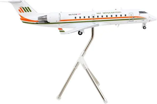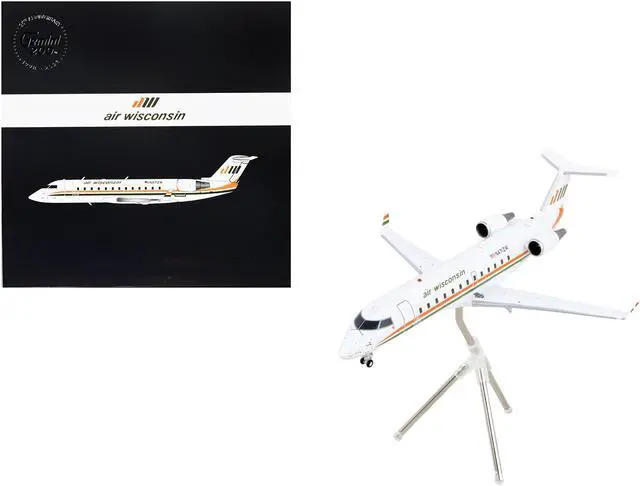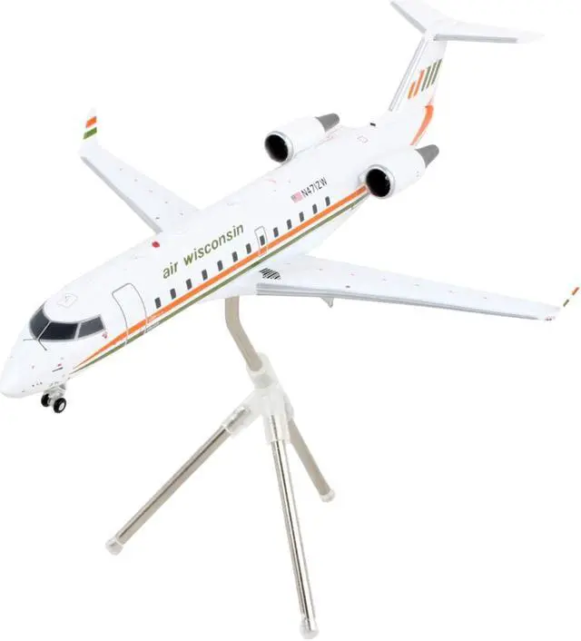 Brand new 1/200 scale diecast airplane model of Bombardier CRJ200 Commercial Aircraft "Air Wisconsin" White with Orange and Green Stripes "Gemini 200" Series die cast model by GeminiJets.