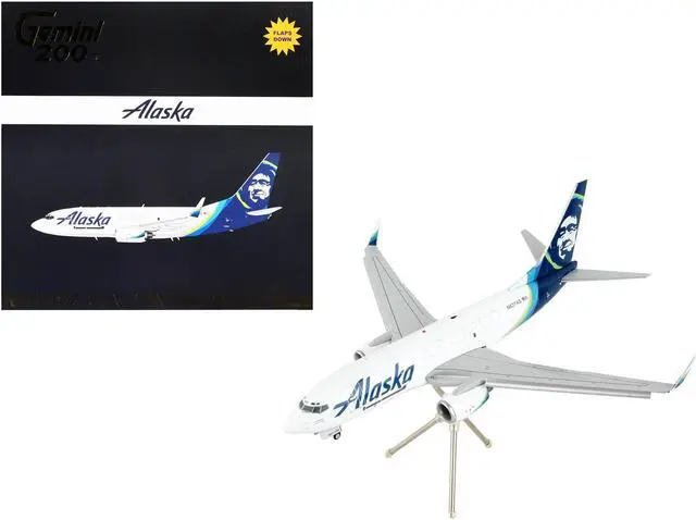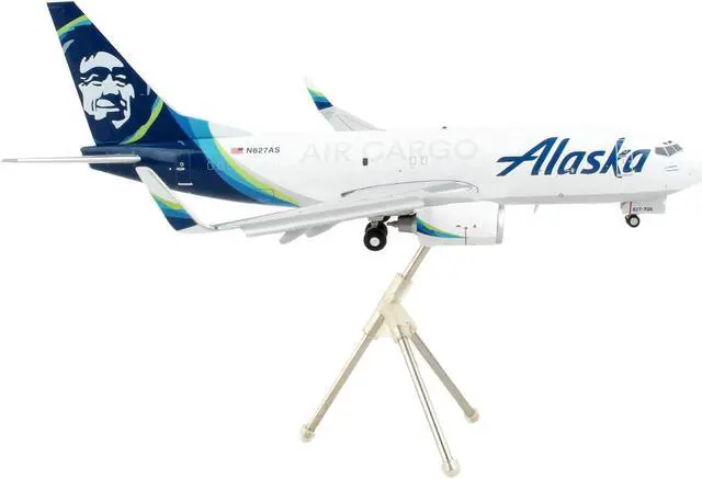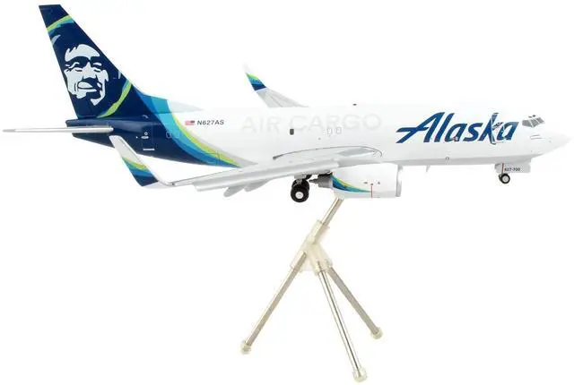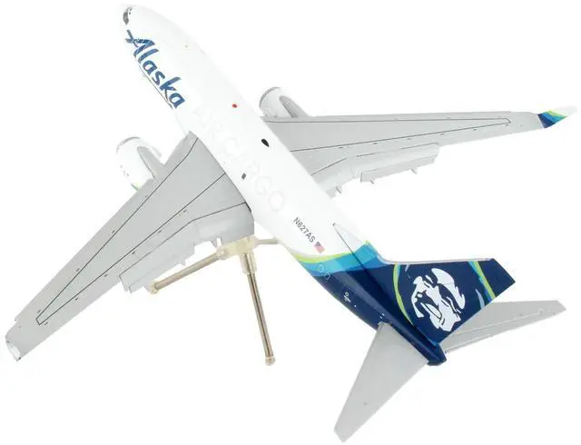 Brand new 1/200 scale diecast airplane model of Boeing 737-700BDSF Commercial Aircraft with Flaps Down "Alaska Air Cargo" White with Blue Tail "Gemini 200" Series die cast model by GeminiJets.