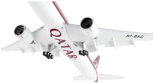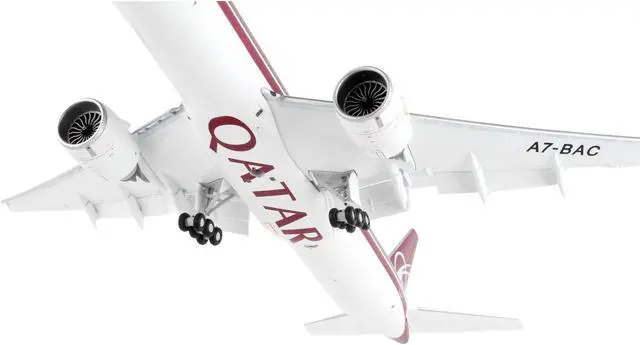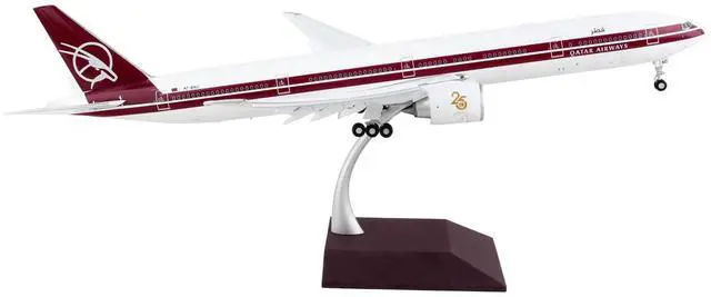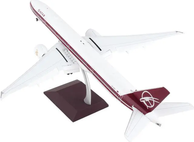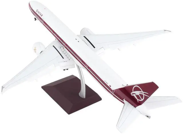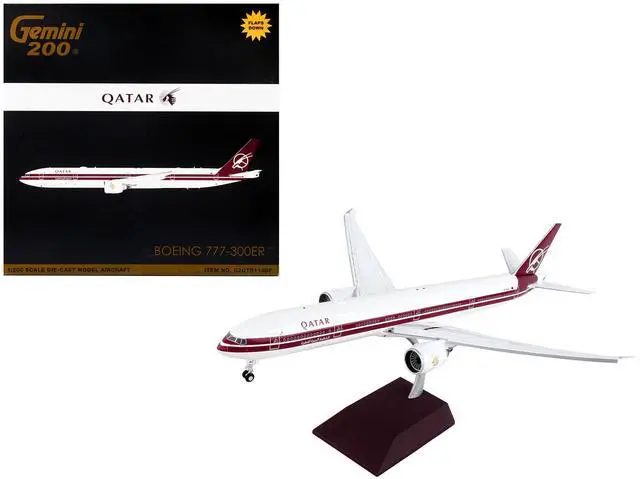 Brand new 1/200 scale diecast airplane model of Boeing 777-300ER Commercial Aircraft with Flaps Down "Qatar Airways" White with Dark Red Stripes "Gemini 200" Series die cast model by GeminiJets.