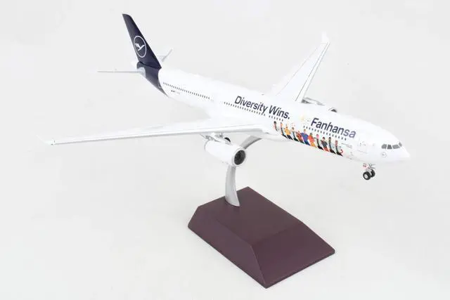 Brand new 1/200 scale diecast airplane model of Airbus A330-300 Commercial Aircraft "Lufthansa - Diversity Wins" White with Blue Tail "Gemini 200" Series die cast model by GeminiJets.