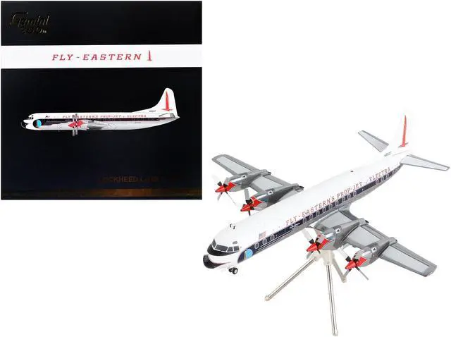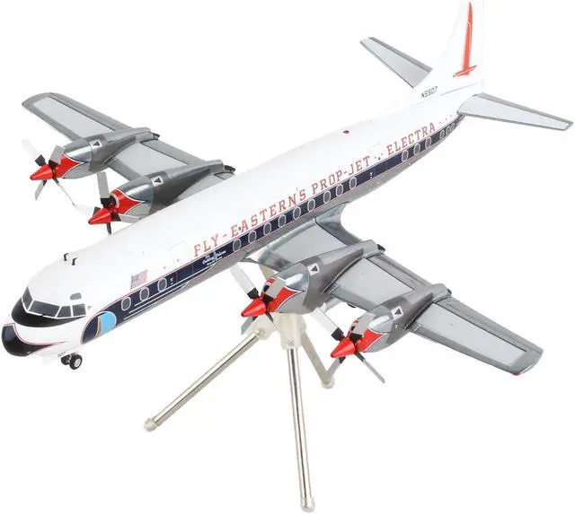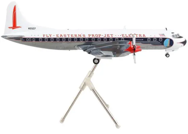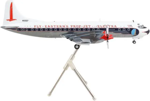 Brand new 1/200 scale diecast airplane model of Lockheed L-188 Electra Commercial Aircraft "Eastern Air Lines" White with Blue Stripes "Gemini 200" Series die cast model by GeminiJets.