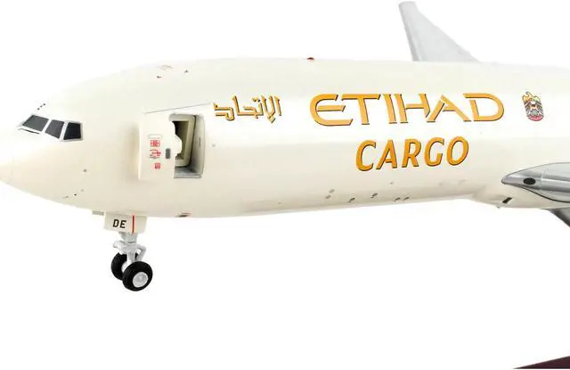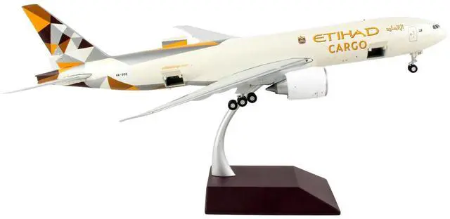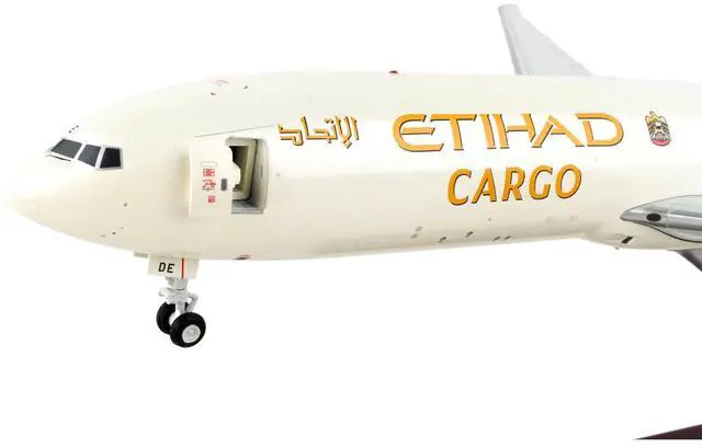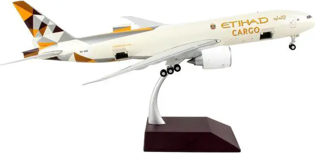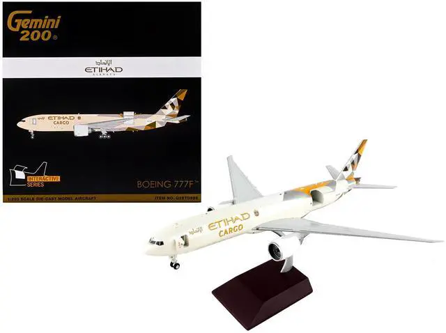 Brand new 1/200 scale diecast airplane model of Boeing 777F Commercial Aircraft "Etihad Airways Cargo" Beige with Tail Graphics "Gemini 200 - Interactive" Series die cast model by GeminiJets.