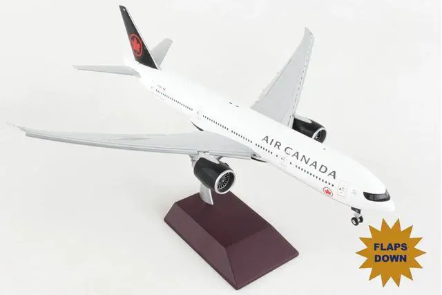 Brand new 1/200 scale diecast airplane model of Boeing 777-200LR Commercial Aircraft with Flaps Down "Air Canada" White with Black Tail "Gemini 200" Series die cast model by GeminiJets.