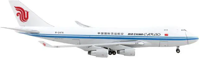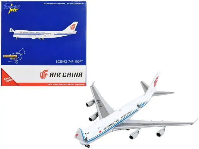 Brand new 1/400 scale diecast airplane model of Boeing 747-400F Commercial Aircraft "Air China Cargo" White with Blue Stripes "Interactive Series" die cast model by GeminiJets.