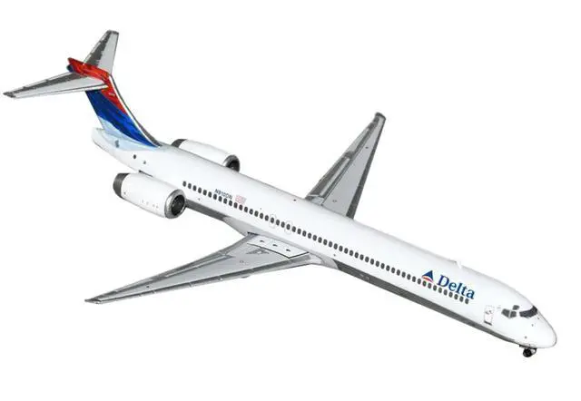 Brand new 1/400 scale diecast airplane model of McDonnell Douglas MD-90 Commercial Aircraft "Delta Air Lines" (N910DN) White with Blue and Red Tail die cast model by GeminiJets.