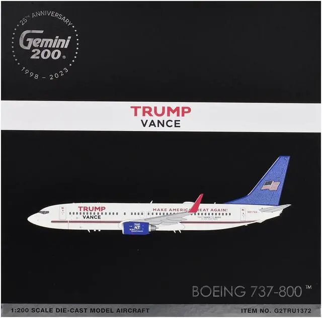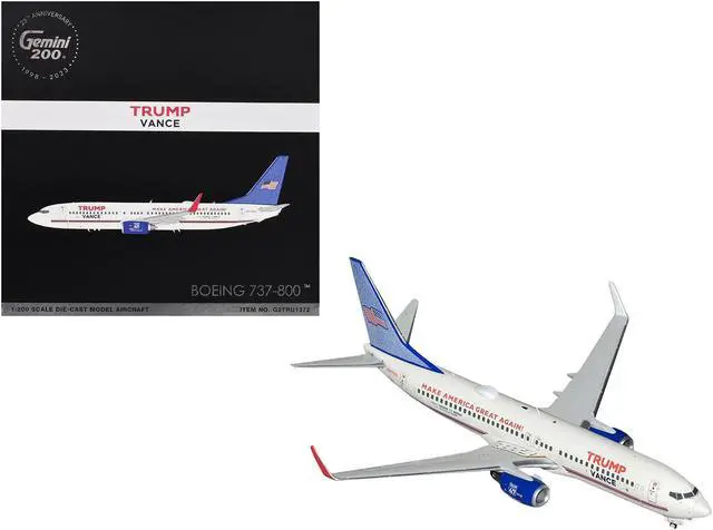 Boeing 737-800 Commercial Aircraft "Trump-Vance Campaign" White w/Blue Tail "Gemini 200" 1/200 Diecast Model by GeminiJets