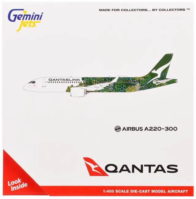 Brand new 1/400 scale diecast airplane model of Airbus A220-300 Commercial Aircraft "QantasLink - Minyma Kutjara Tjukurpa" (VH-X4A) White with Graphics die cast model by GeminiJets.