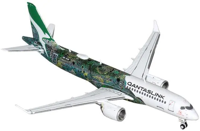 The A220-300, with its advanced fuel efficiency and reduced environmental footprint, quickly became an integral part of QantasLinks fleet. Operating on regional routes across Australia, VH-X4A was instrumental in supporting the travel needs of rural communities and promoting tourism to lesser-visited areas. The aircraft's design and operations symbolize QantasLinks commitment to sustainability and respect for Indigenous culture, with the green livery paying homage to the landscapes and cultural stories of the APY Lands.