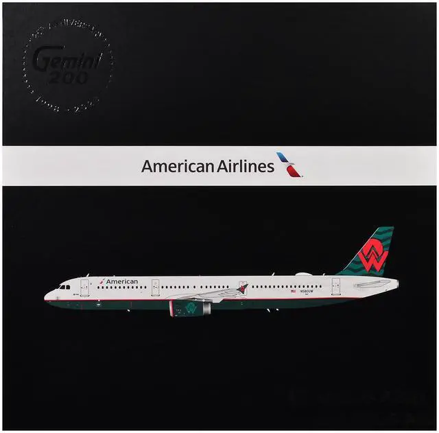 Brand new 1/200 scale diecast airplane model of Airbus A321 Commercial Aircraft "American Airlines - America West Heritage Livery" (N580UW) White with Tail Graphics "Gemini 200" Series die cast model by GeminiJets.
