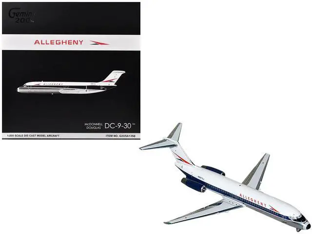 Brand new 1/200 scale diecast airplane model of McDonnell Douglas DC-9-30 Commercial Aircraft "Allegheny Airlines" (N967VJ) White with Blue Stripes "Gemini 200" Series die cast model by GeminiJets.