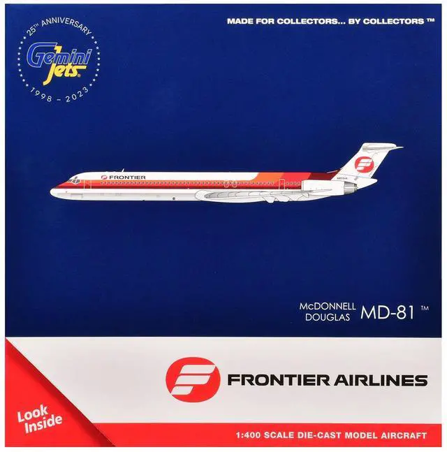 Add a piece of aviation history to your collection with this stunning 1:400 scale model registration N859HA with landing gear. Perfect for collectors and enthusiasts, this replica captures the iconic design and features of the MD-80, a significant aircraft in the evolution of low-cost U. S. air travel. A must-have for those who appreciate the history of Frontier Airlines and the aviation industry as a whole.